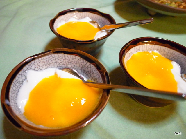 上甜點囉! 新鮮芒果醬淋在奶酪上,芒果醬真的很好吃!