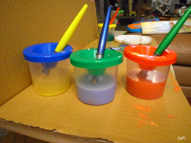 分色的洗筆桶真的很好用! 媽媽我再也不用擔心阿鼓混色的問題了!