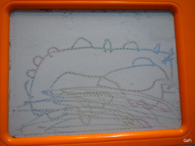 期間~阿鼓又在磁性畫板上即興創作了一隻劍龍~