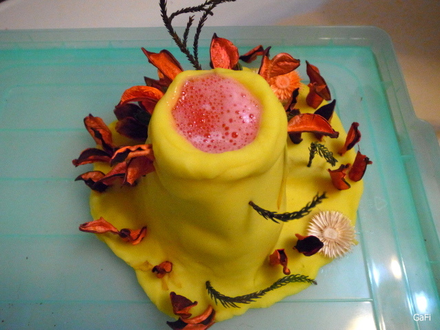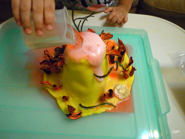 更大的好處是,不用加太多的小蘇打粉,就可以得到更好的火山噴發效果囉! 可以省下許多小蘇打粉!