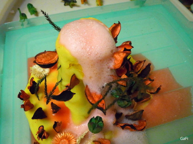洗潔精的火山會冒出較大量的泡泡,效果更為壯觀~