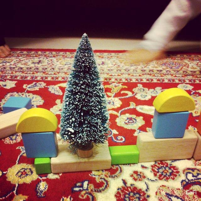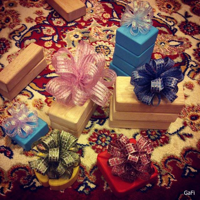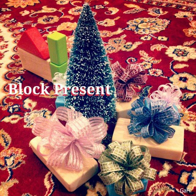 時逢聖誕節~隨手在積木上擺上緞帶裝飾,瞬間好像聖誕樹下排放著滿滿的聖誕節禮物呢!