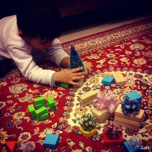 瞧! 小阿鼓把積木變成禮物了!! 這這~只能意會不能言傳~(大誤!)
