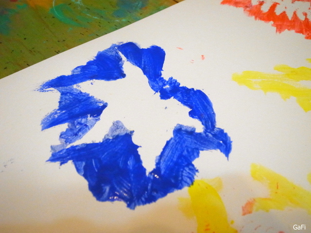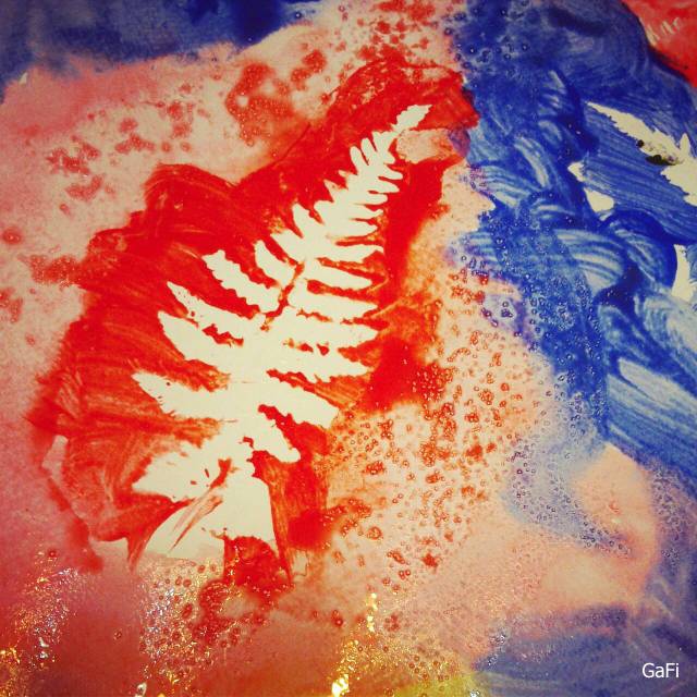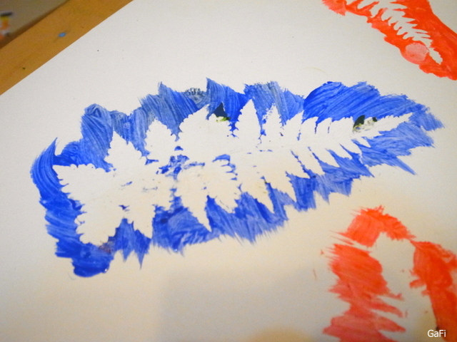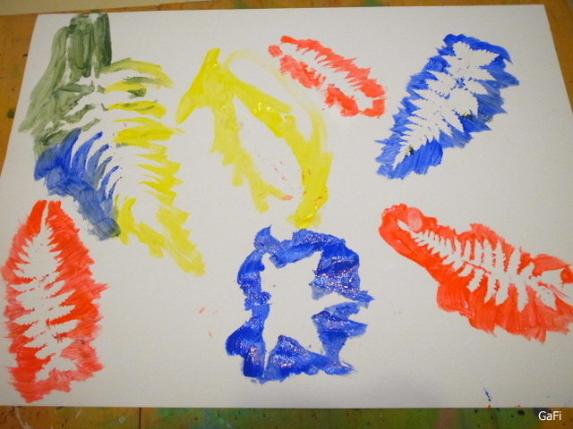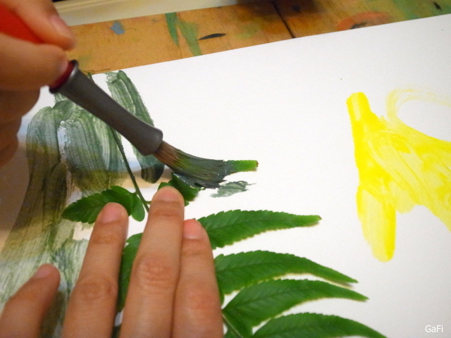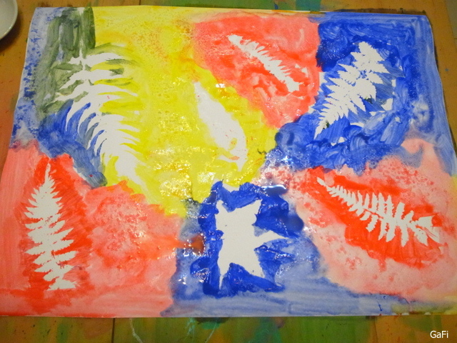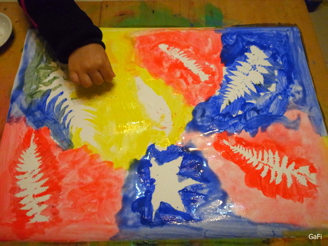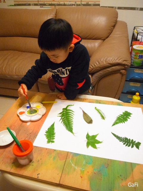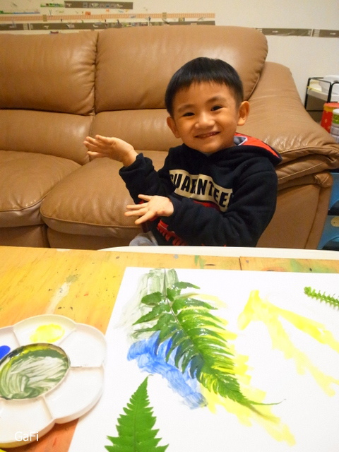 但,阿鼓的小小手似乎無法像媽咪那樣順利反轉上色出完整的蕨類圖案。