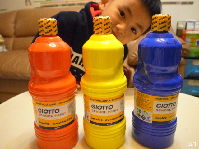 現在有了1000ml超大罐的水彩顏料,讓貓兒我帶阿鼓玩水彩顏料時,終於不再綁手綁腳了! XD